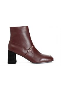 Women's nappa ankle boot with personalized buckle. zipper on the inside. comfortable shoe with an innovative and refined style as well as very feminine. the toe and 65mm heel are squared. the insole is in leather.