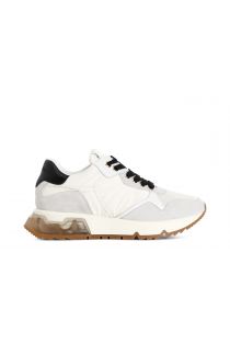 White nylon and suede women’s running shoes. coloured top line and laces.