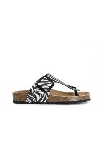 Women’s flip-flop sandals in printed fabric with buckle. comfortable fussbett.