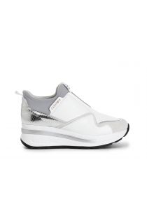 women's slip-on leather shoes with laminated inserts white