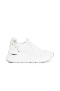 Women's slip-on in leather covered with studs and rhinestones. internal footbed. a practical and functional choice for those seeking comfort without sacrificing style.