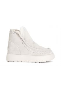 Women's ankle boot with raised sole. suede upper and synthetic fur lining.