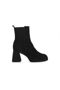 Women's suede ankle boot with a rounded shape. internal zip on the inside of the shoe. the insole is in leather. thick heel 80 mm high.