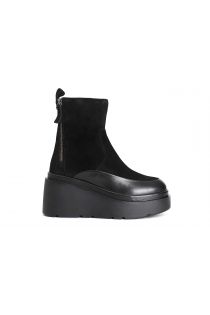 women's suede ankle boot with double zip and plateau black