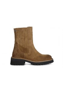 Suede ankle boot with elastic covered with personalized stud. 50mm high heel. the insole is in leather.