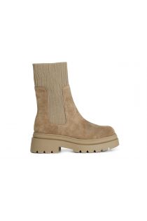 Women's ankle boot in suede and sock-effect upper in elasticated fabric to facilitate the fit. 55mm high heel. the insole is in leather.
