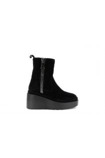 Women's suede ankle boot with decorated metal zip. internal zip as closure. 70 mm heel and 30 mm platform. the insole is in leather.