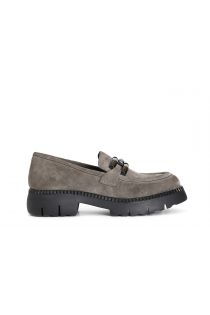 Women's suede moccasin with horsebit. lining and insole are in leather. 25 mm high plateau. 40mm heel.