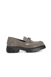 Women's suede moccasin with mignon. lining and insole are in leather. 25 mm high plateau. 40mm heel.