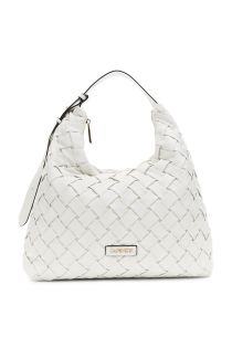 woven nappa effect bag with metal lettering white