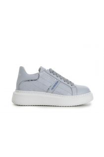 woven print leather sneakers on box sole sky blu