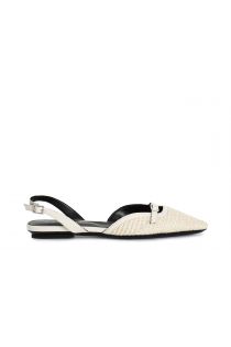 Woven straw slingback with strap and buckle. strap on the back. slim shape with 1.5 cm heel. fashionable comfortable and adding a trendy touch to your look this shoe is a must-have for the season.