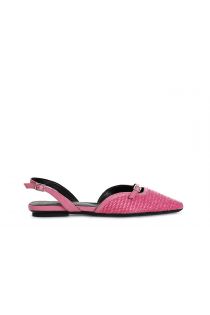 Woven straw slingback with strap and buckle. strap on the back. slim shape with 1.5 cm heel. fashionable comfortable and adding a trendy touch to your look this shoe is a must-have for the season.