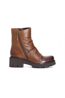 Wrinkled leather ankle boots with oblique zip. Thick rubber heel and tread pattern outsole